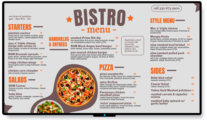 DsMenu live menu streaming apps built into Samsung, LG, and FireTV—or simply retrofit any screen with Amazon Signage Stick. Your menus connect directly to Genius and other POS systems, automated price changes in real time.